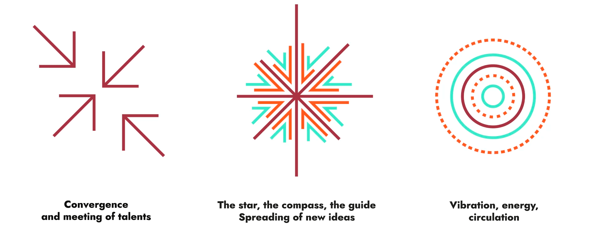 For their identity, we created a strong symbol that can be interpreted in many different ways. It is a compass, guiding companies; an umbrella, protecting and nurturing them; a star to follow. But most importantly, it symbolises the convergence of people and ideas that create positive impact and influence.