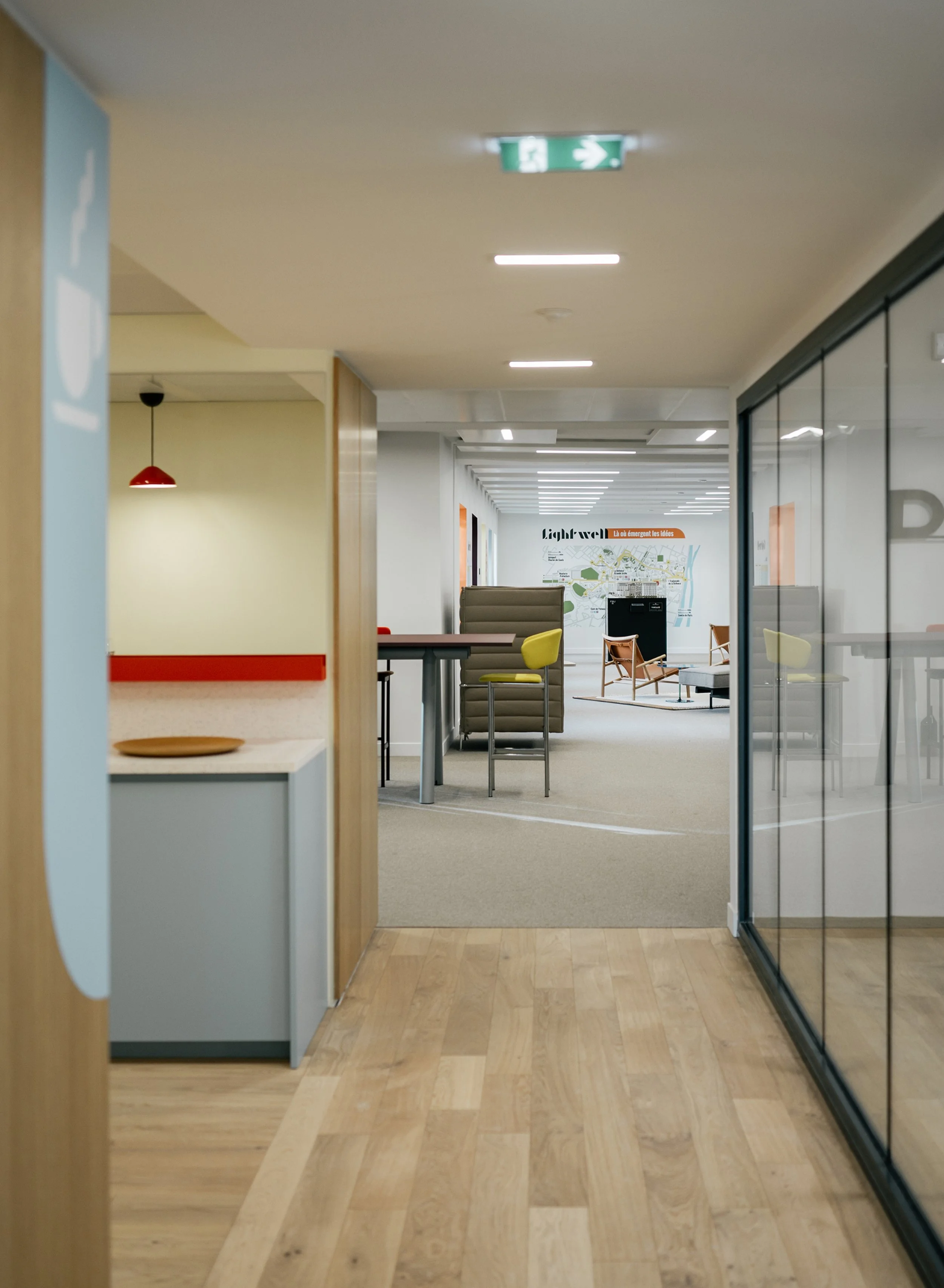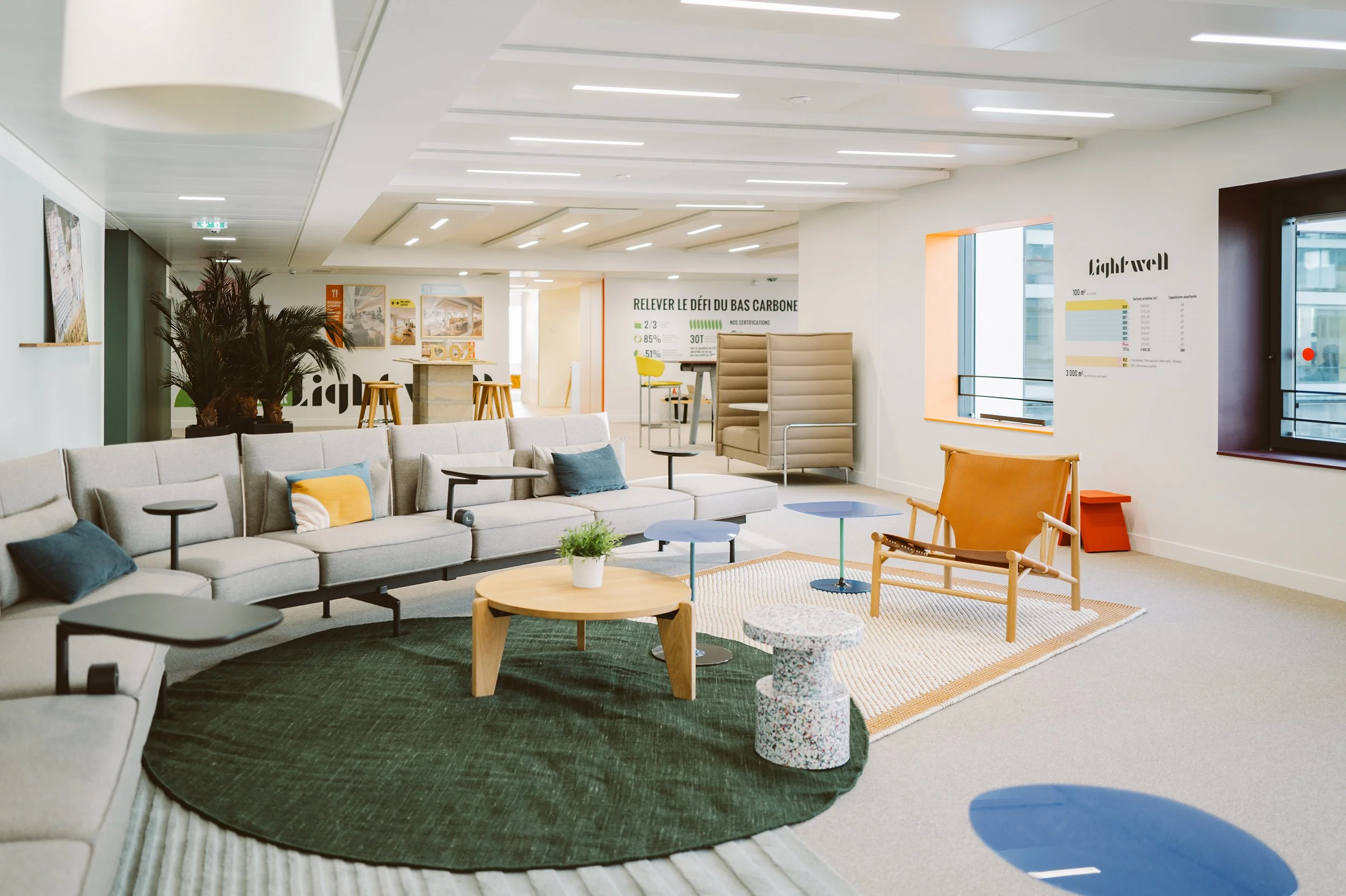 Lightwell is a human-scale office building in the La Défense business district that has been rethought by URW as part of the area’s revitalisation — aiming to be a low-carbon building, make offices more people-friendly, and reinvigorate the space. To achieve this, Saguez & Partners sought to bring a Lifestyle spirit to the space, introducing warmth, colour, and a more aspirational atmosphere.